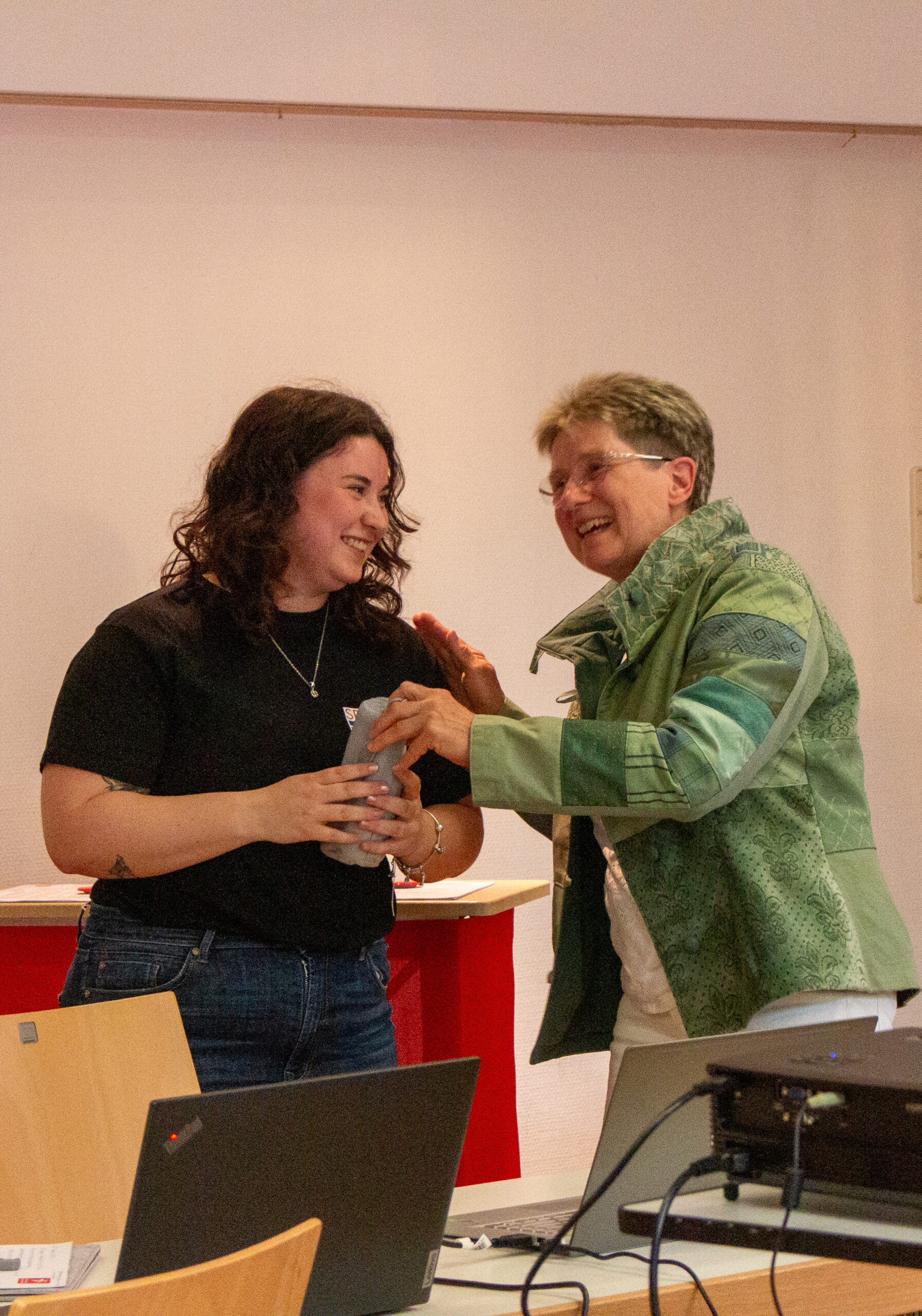 Die Vorsitzende des Turngau Frankfurts Helen Rabe-Weber begrüßte die Gäste anschließend, in den danebenliegenden Räumlichkeiten des Saalbau Bonames und führte durch die Tagesordnung. Neben einem inspirierenden Grußworte des Sportkreisvorstandes Roland Frischkorn, durfte sich der Gauturntag über die Anwesenheit einer Vertreterin des Sportamts Jessica Alina Sell und der Regionalreferent*innen des Hessischen Turnverbandes Lisa Fink freuen. Frau Sell berichtete über diverse Projekte im Bereich Bewegungskoordination des Sportamts.