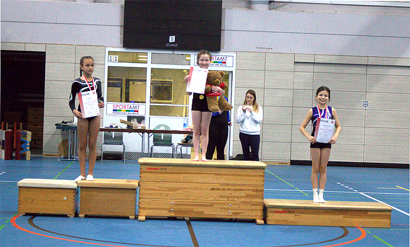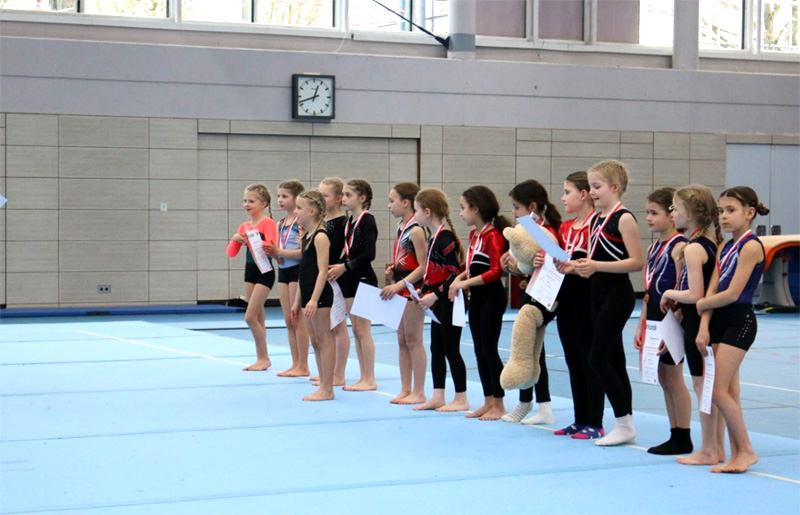 Mit einer Verspätung von fast einer Stunde, konnte dann der letzte Durchgang an diesem Tag an den Start gehen. Hier turnten fünfunddreißig Mädchen aus neun Vereinen im Rahmenwettkampf P 5. Dank unserer Kampfrichter*innen konnte eine Teil der Verspätung wieder eingeholt werden. Durch die hervorragende Mithilfe aller Zuschauer*innen, Trainer*innen, Kampfrichter*innen und der Turnerinnen, wurde der Abbau der Geräte in Rekordzeit geschafft, sodass, die von den fleißigen Helfern vorbereiteten Urkunden und Medaillen bei der folgenden Siegerehrung schnell ihre neuen Eigentümer*innen finden konnten.