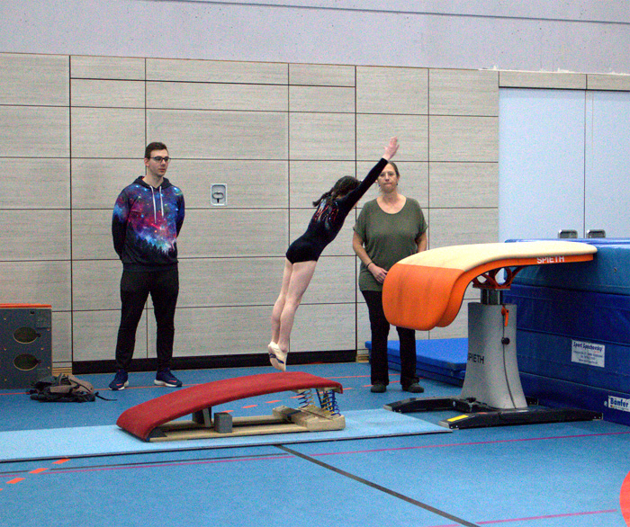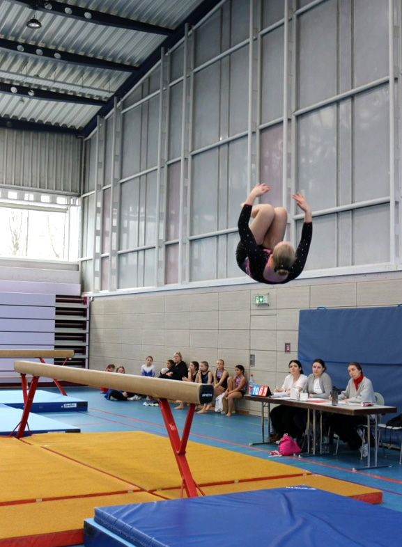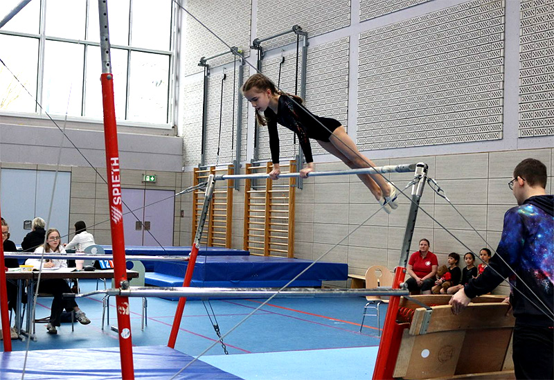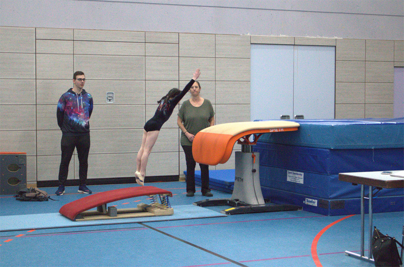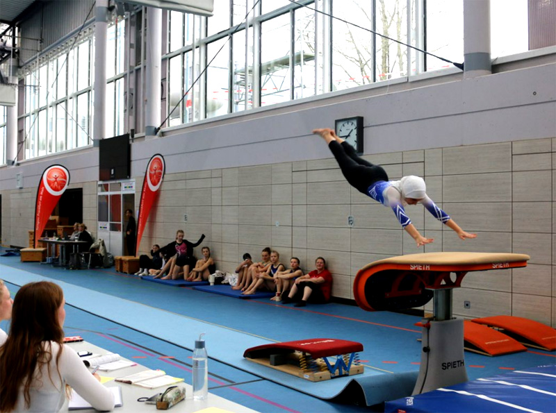 Hierzu trafen sich am Samstag Morgen 30 Turnerinnen ab neun Jahre, um ihren ersten Wettkampf des Jahres zu turnen. Vor dem Turnen steht zuerst das Aufbauen der Wettkampfgeräte, Sprung, Stufenbarren, Schwebebalken und die Bodenfläche. Dank dem Einsatz vieler Helfer aus den neun teilnehmenden Vereinen, war das recht schnell erledigt und der Wettkampf konnte pünktlich starten.
